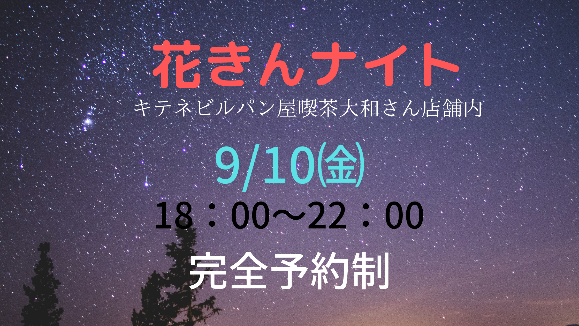2. 手稲 花きんナイト(要予約) 9月10日金曜日 18:00〜