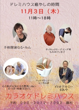 2. 11月3日 倶知安ドレミハウス癒しの時間 11時〜18時(都合により17時までの出店になります)